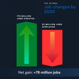 No credible data supports that scenario. Research from institutions like the World Economic Forum and Goldman Sachs consistently shows task-level disruption rather than mass job elimination. Jobs change faster than they disappear, and most roles retain a human core even as tasks shift.